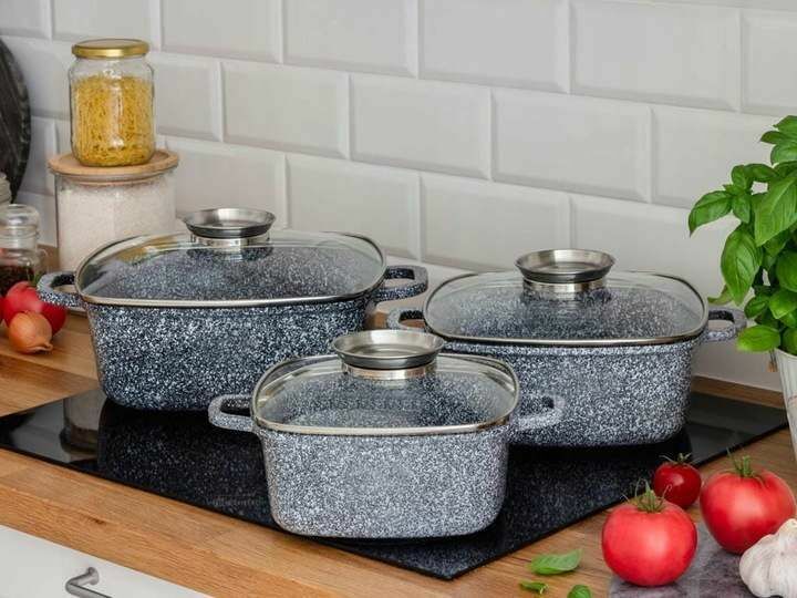 Garnki brytfanki marmurkowe 3szt czarne lub szare 199zl
