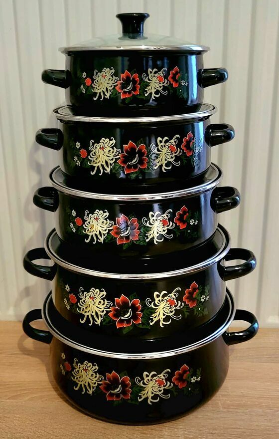 Zestaw składa się z 5 garnków z pokrywkami do stosowania na gazie + indukcji. Wykonane są ze stali emaliowanej wysokiej jakości.