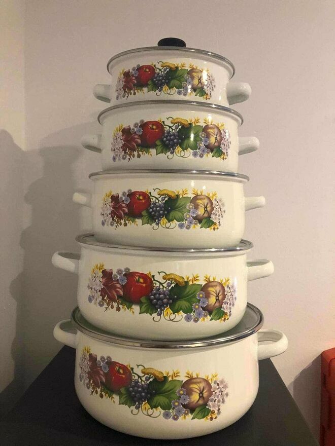 Sprzedam fabrycznie nowe garnki emaliowe, w różnych wzorach i kolorach! Każdy znajdzie coś dla siebie!Towar jest całkowicie nowy i znajduje się w opakowaniu. Produkt przed wysyłką jest odpowiednio, bardzo starannie zabezpieczony – garnki dotrą w całości, bez żadnych uszkodzeń!