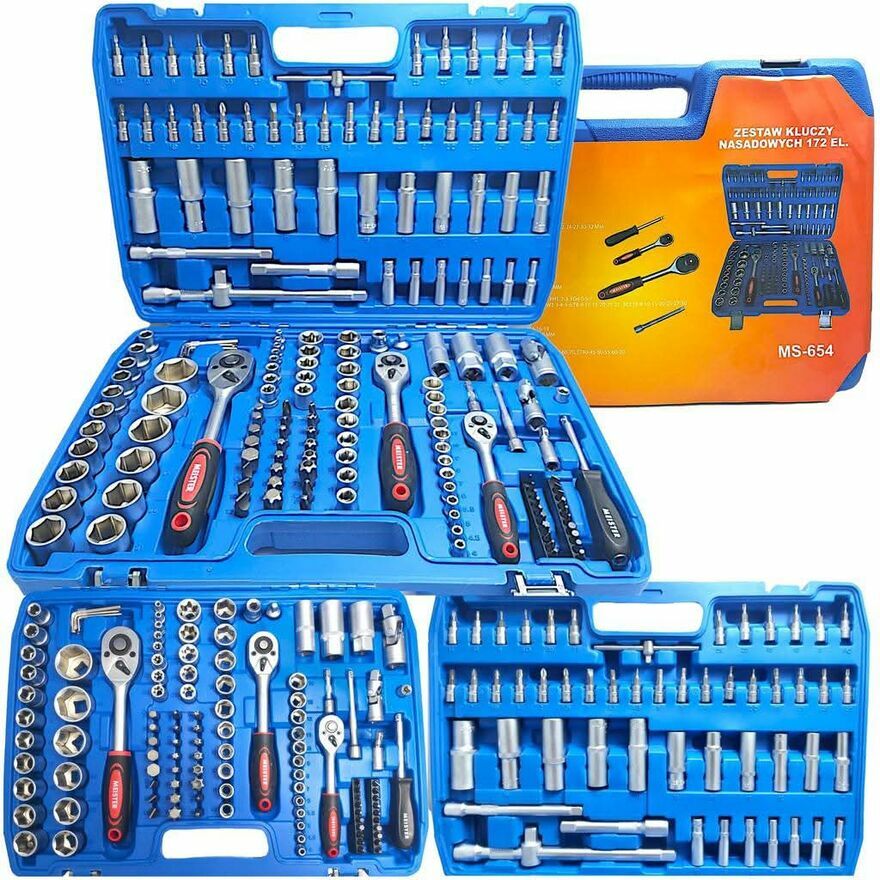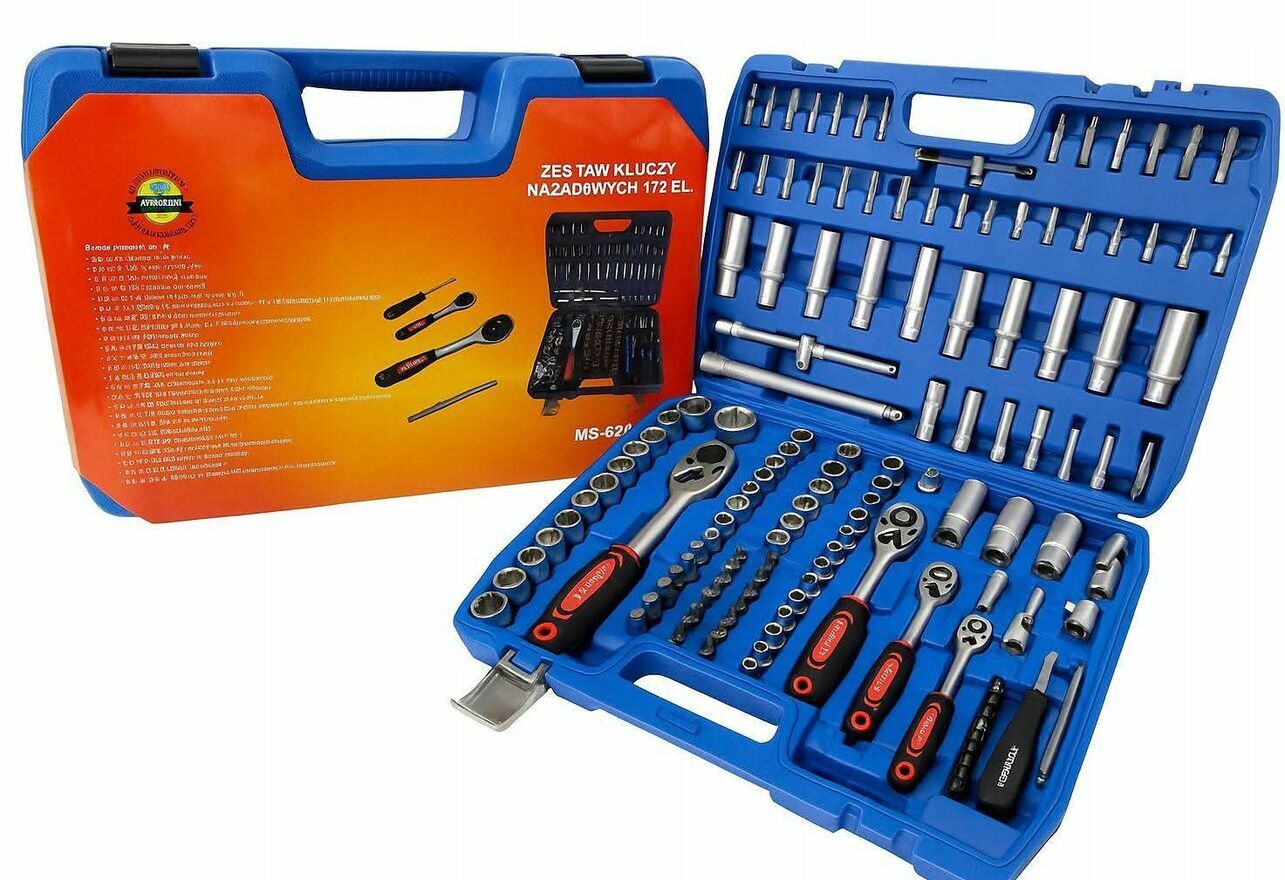 ZESTAW KLUCZY NASADOWYCH 172 ELEMENTY GRZECHOTKA NARZĘDZIA DUZA WALIZKAZestaw kluczy nasadowych 172 elementy – profesjonalne narzędzia do każdego zadania!