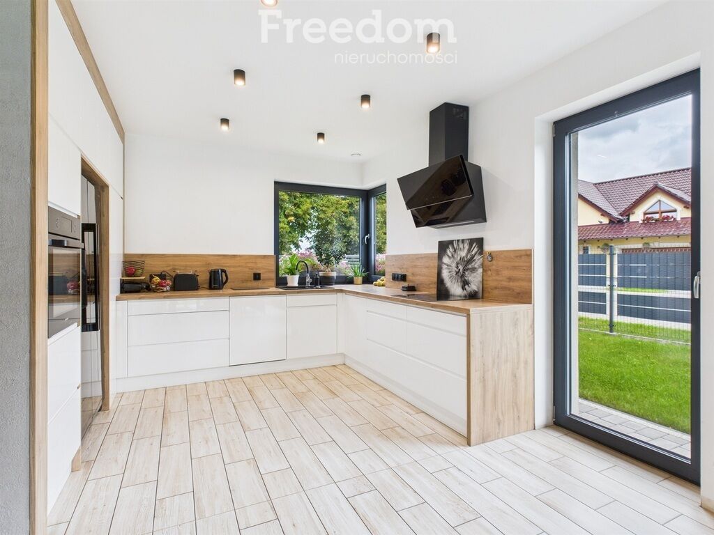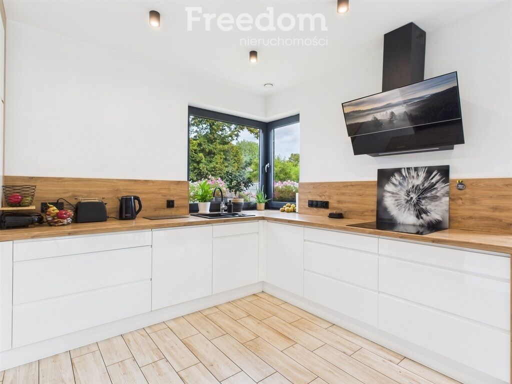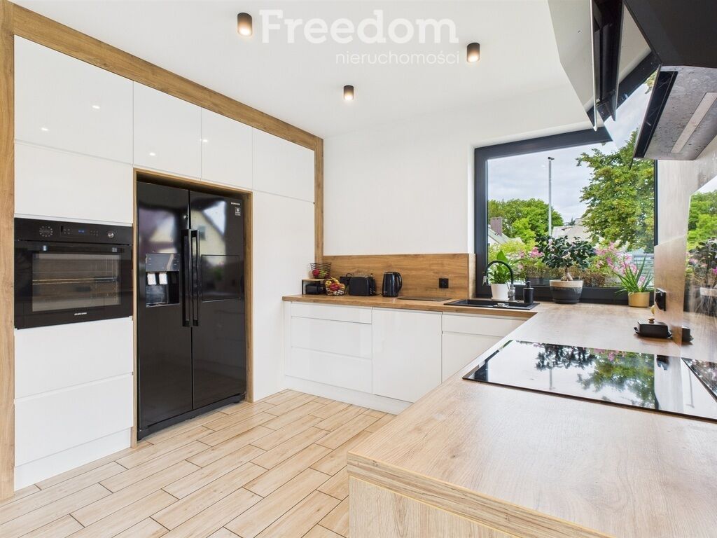 - Kuchnia otwarta na salon i jadalnię, z narożnym oknem i