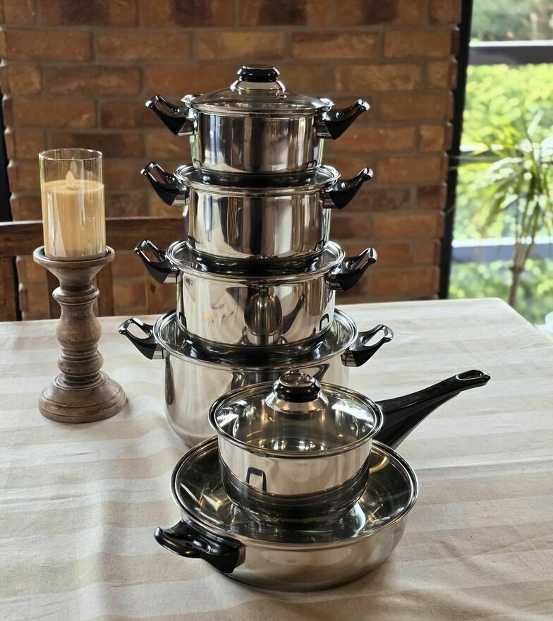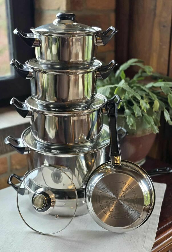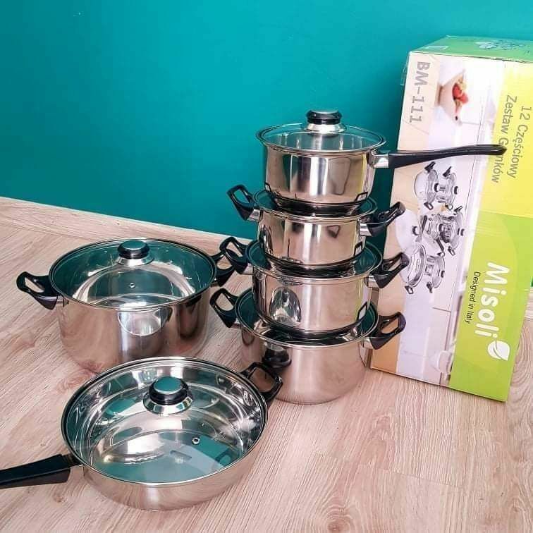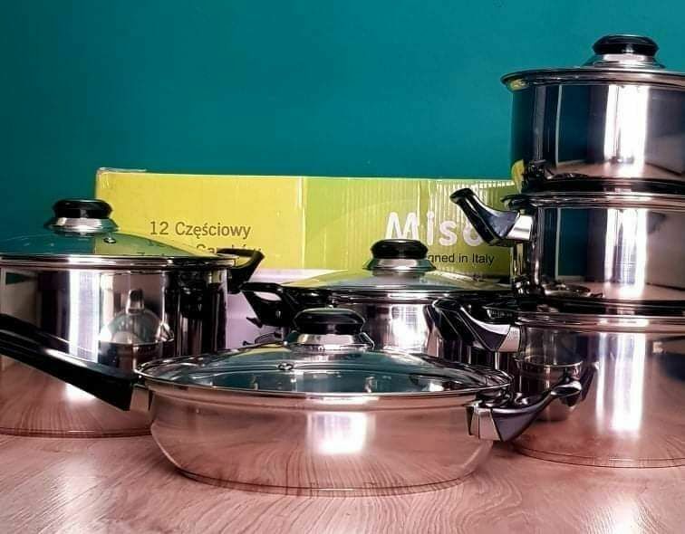GARNKI ZESTAW KOMPLET 12 ELEMENTÓWW ofercie na sprzedaż fabrycznie nowy komplet garnków, który zawiera aż 12 elementów! Zestaw metalowych garnków 12 elementowych z pokrywkami z odpowietrznikiem. W skład zestawu wchodzi 4 garnki + rondel + głęboka patelnia.