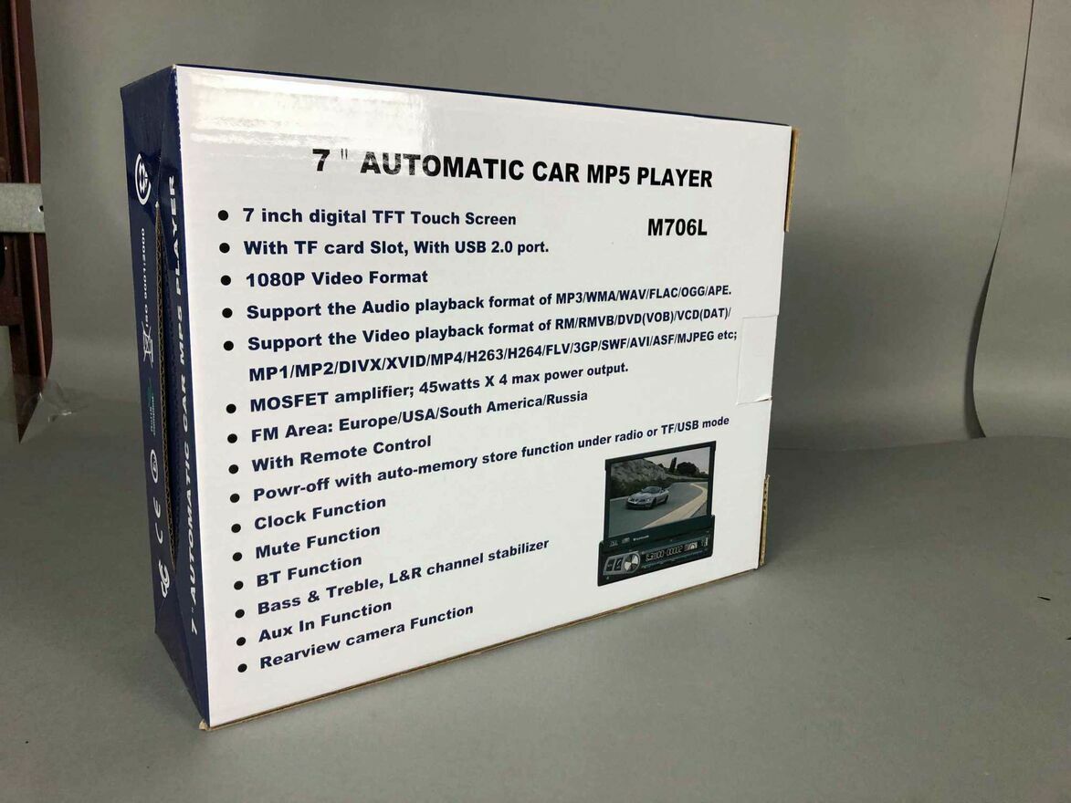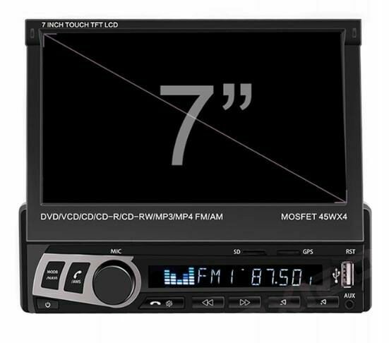 Radio z ekranem M706LPrzedmiotem aukcji jest nowe radio z 7 calowym ekranem dotykowym TFT model: M706L. Radio wyposażone w czytnik kart micro SD (do 32GB), wejście USB i AUX. Dodatkowo radio wyposażono w moduł bluetooth. Radio posiada możliwość podpięcia kamery cofania + możliwość podpięcia kolejnych monitorów np. dla pasażerów oraz możliwość podpięcia wzmacniacza. Radio nie jest wyposażone w moduł GPS ani antenę GPS (można za to puścić GPS z telefonu za pomocą MIRROR LINK). Z radia można korzystać bez konieczności wysunięcia panela.